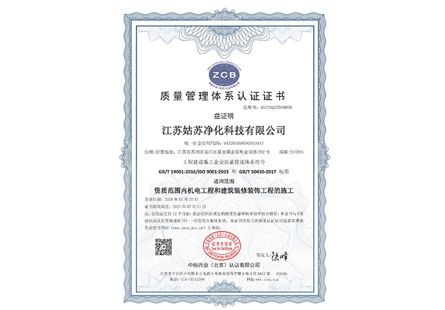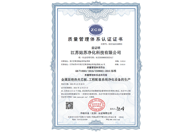 質量管理體系認證證書